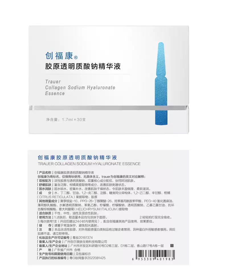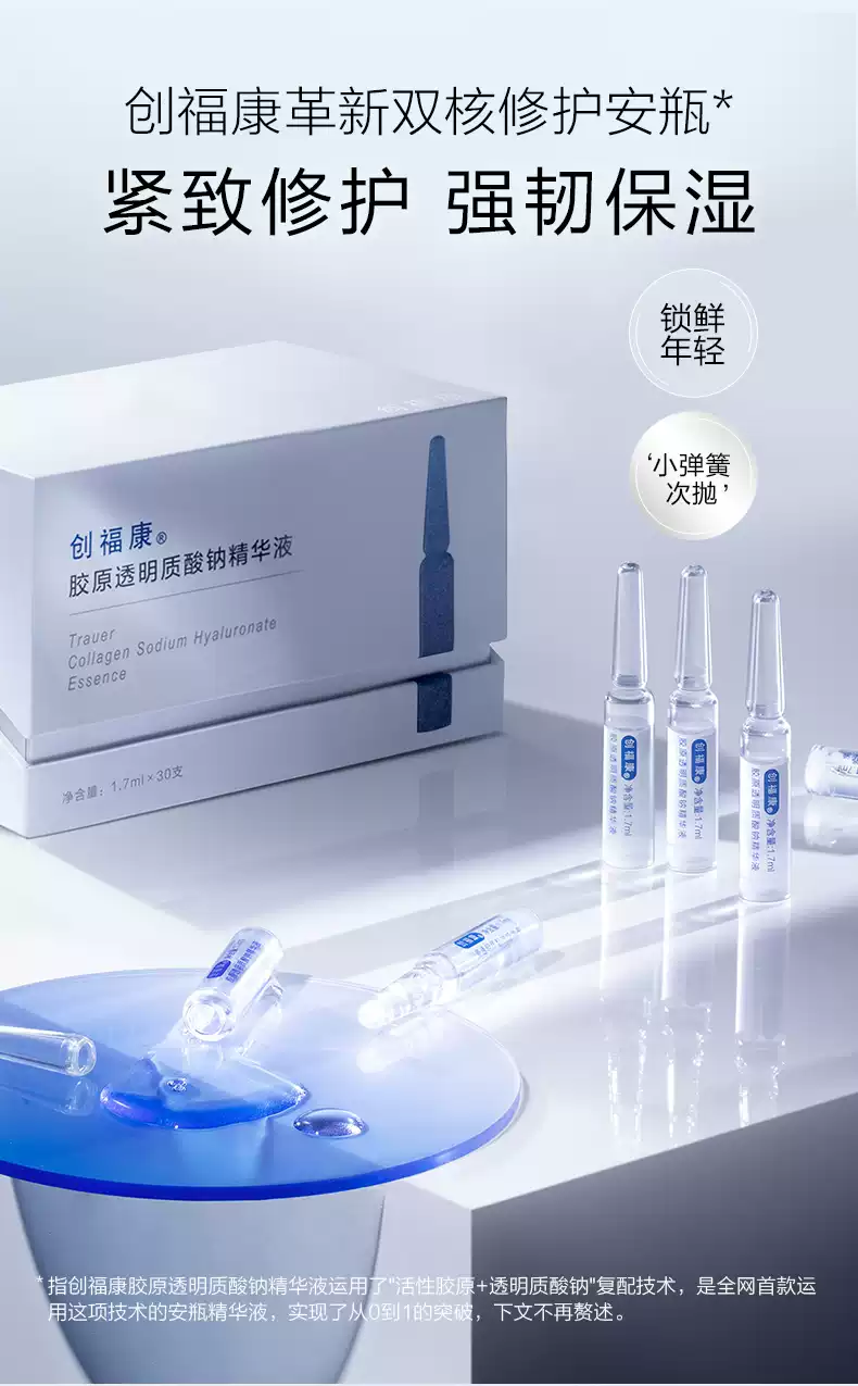 【新品】创福康Trauer-活性胶原透明质酸钠精华液保湿舒缓修护紧致褪红(小弹簧次抛)1.7ml*30支-青桔小馆
