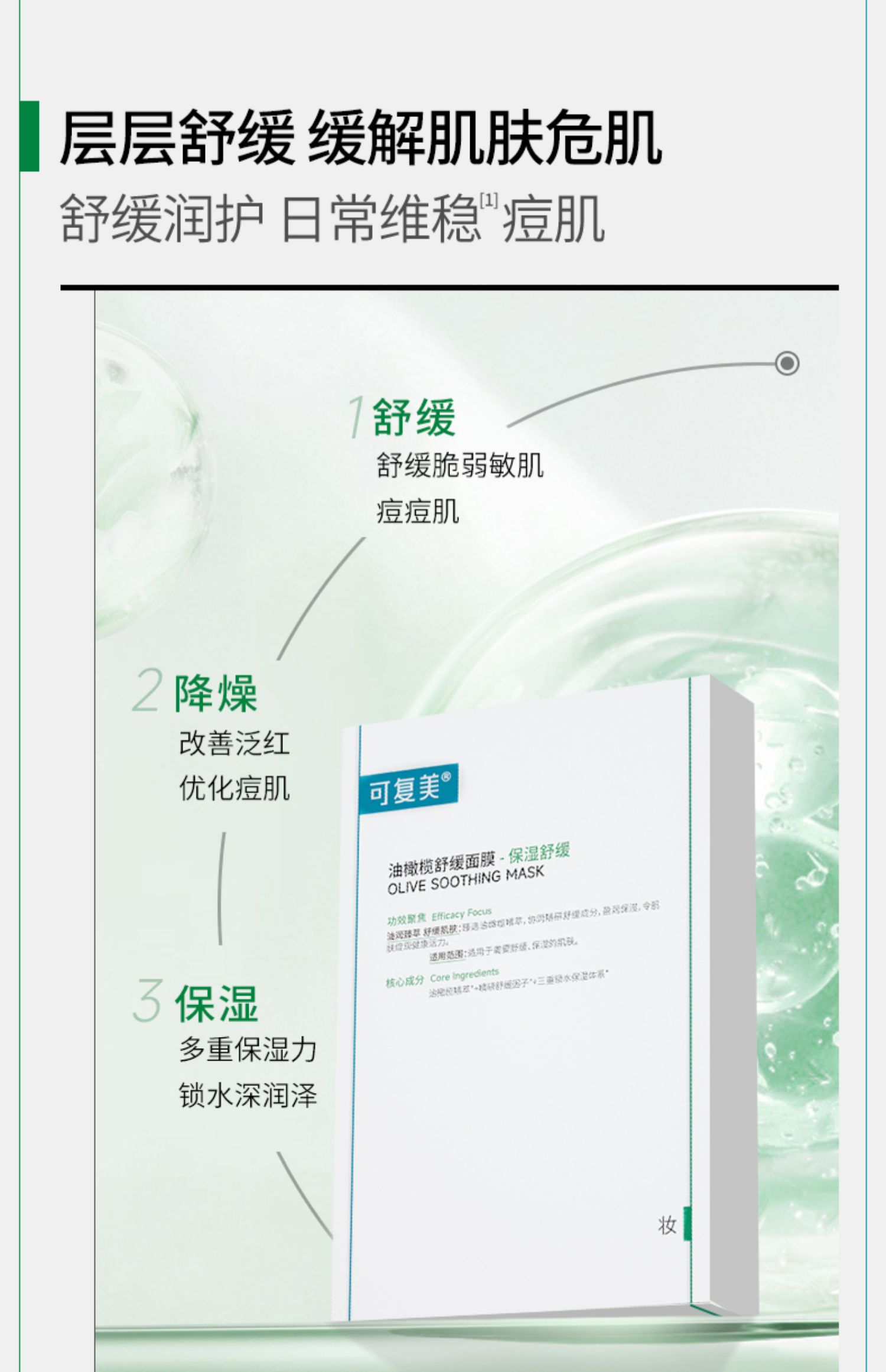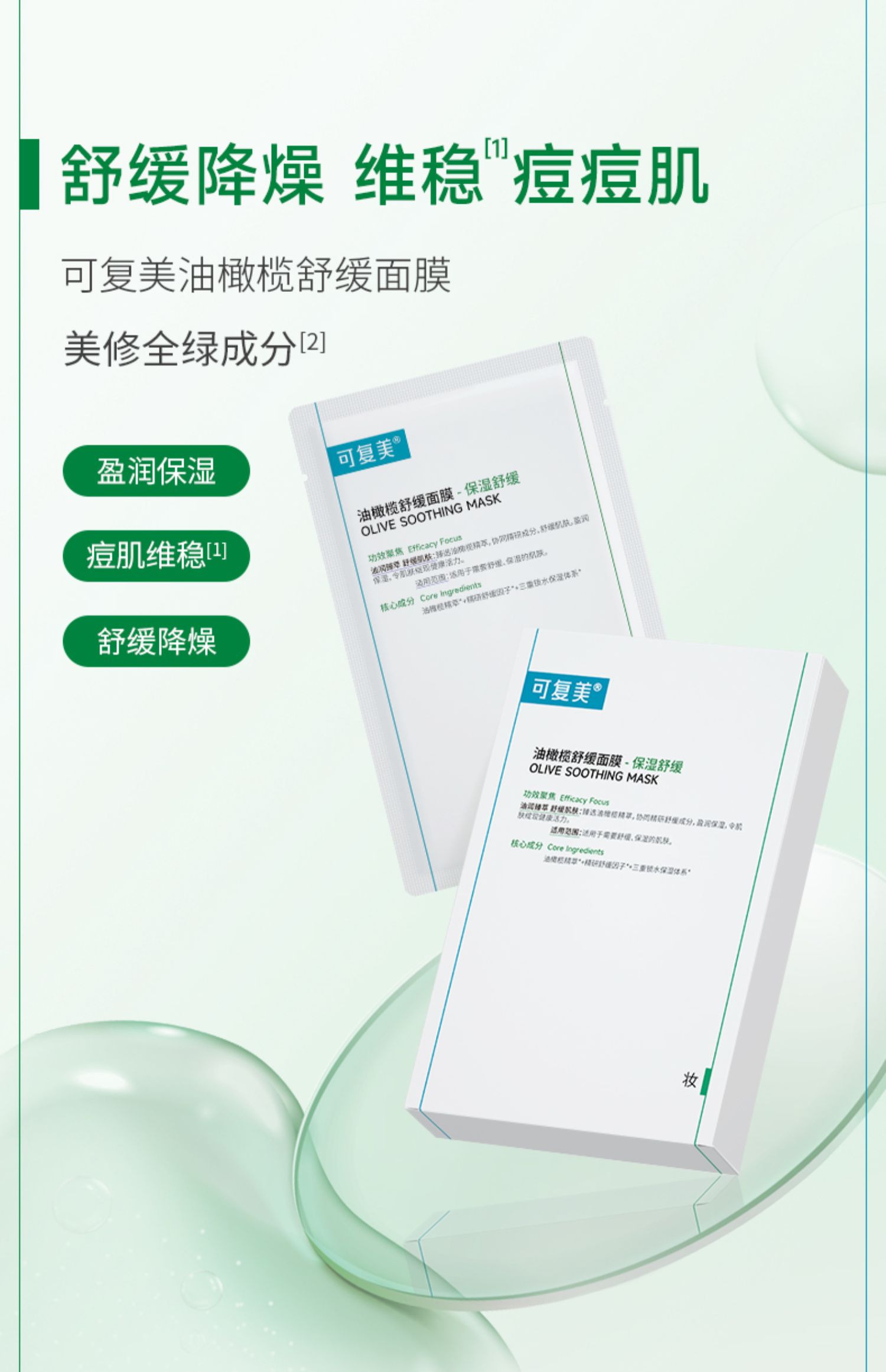 【新品】可复美油橄榄舒缓面膜保湿舒缓降燥维稳痘痘修护积雪草泛红祛痘印-青桔小馆